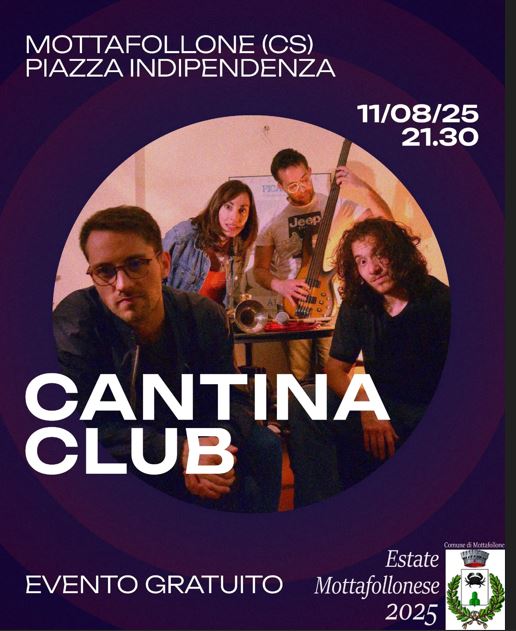 L’11 agosto i Cantina Club si esibiranno in Piazza Indipendenza nel comune di Mottafollone