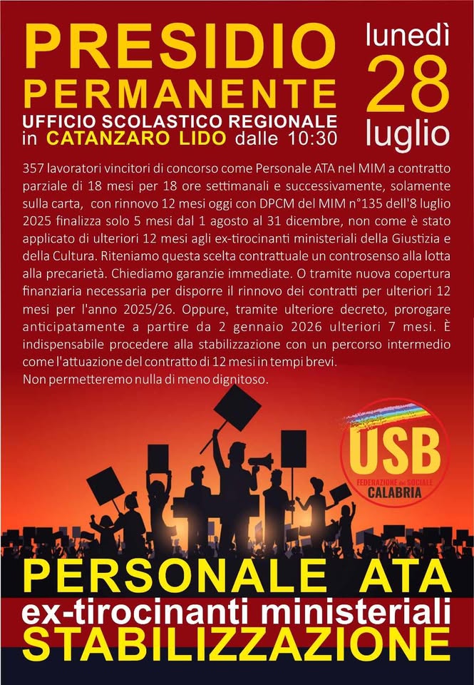 “Da lunedì 28 luglio ci sarà un Presidio Permanente davanti all’ufficio regionale scolastico. Ci saremo noi, poveri precari nella disperazione più assoluta, ma con la forza dei leoni per lottare.