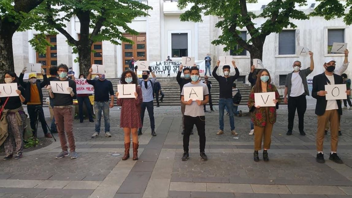 “Anche a Cosenza, come in altre 13 città italiane, ieri pomeriggio hanno manifestato i lavoratori del mondo dello spettacolo, che si sono ritrovati davanti alla Prefettura.”