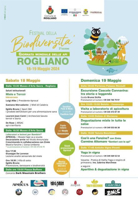 Nelle giornate di sabato 18 e domenica 19 maggio, in occasione della giornata mondiale delle Api 2024, si terrà nel Comune di Rogliano la terza edizione del Festival della Biodiversità
