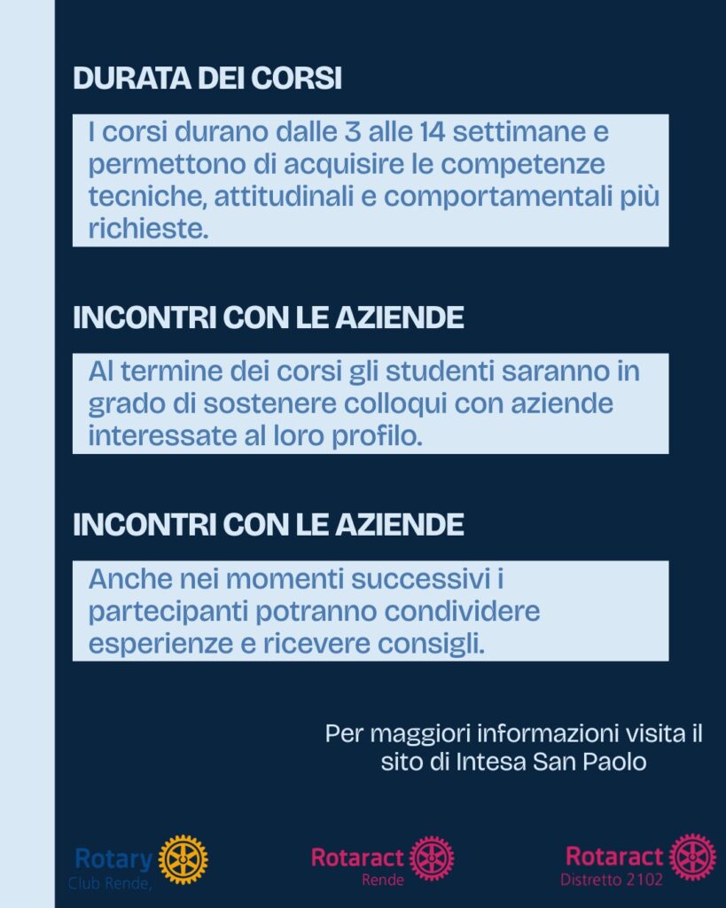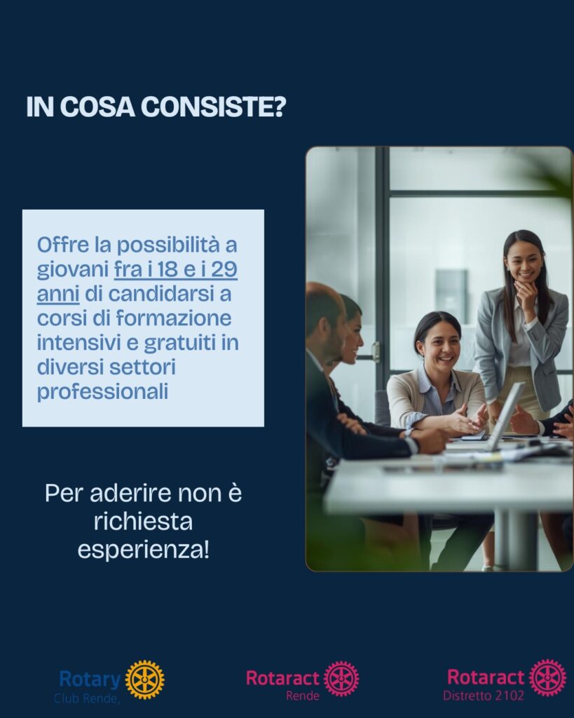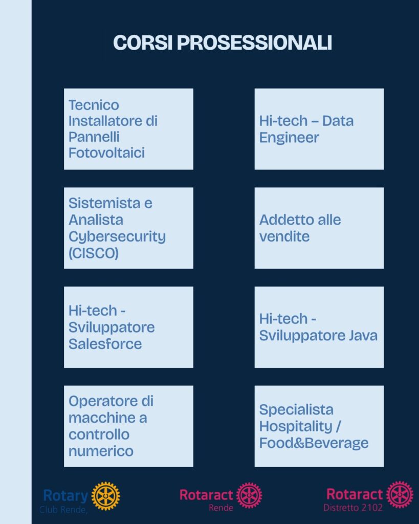 Un’opportunità concreta per chi desidera acquisire competenze professionali e avvicinarsi al mondo dell’impresa. È questo l’obiettivo del progetto “Imprenditore Informato”, iniziativa promossa con il supporto del Rotary Club Rende e del Rotaract Club Rende, pensata per sostenere giovani e aspiranti imprenditori nel loro percorso di crescita professionale.