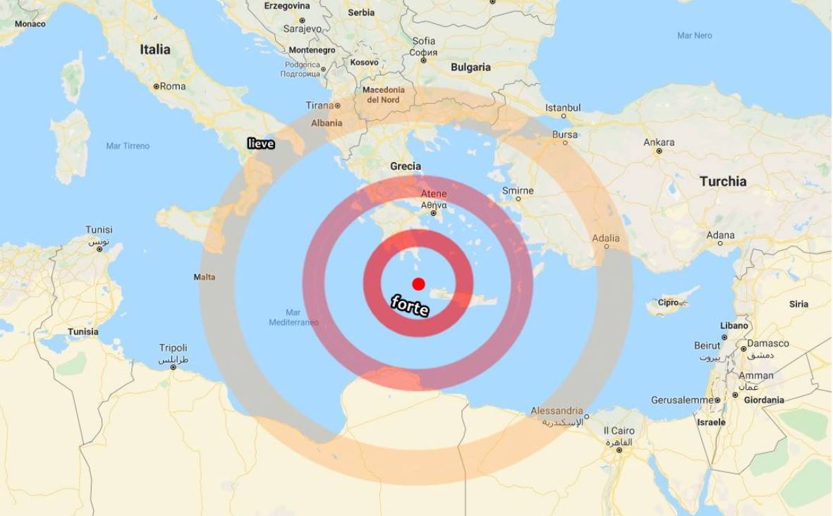 “Un terremoto di magnitudo Mwp 6.0 รจ avvenuto nella zona: Crete, Greece [Sea: Greece], il