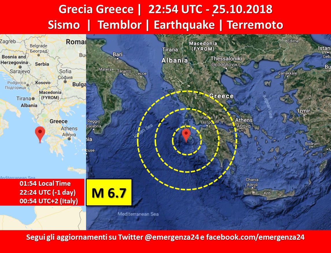 “Il 26 Ottobre 2018 ore 00:54 è stata registrata una scossa di terremoto di magnitudo 6.8 e profondità 10 km a Kerion (Grecia).