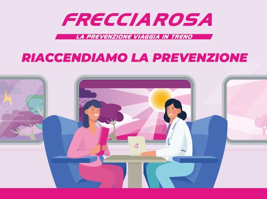 Anche quest’anno, dal 3 al 31 ottobre, appuntamento con Frecciarosa, il progetto di prevenzione del tumore al seno promosso dalla Fondazione IncontraDonna con il Gruppo FS Italiane e il patrocinio del Ministero della Salute che prevede per tutto il mese di ottobre visite, consulenze ed ecografie gratuite a bordo dei treni ad Alta velocità, Intercity e Regionali e nei FrecciaLounge di Roma Termini e Milano Centrale