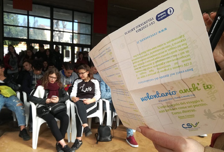 “Il 5 Dicembre a Cosenza, nella Cittadella del Volontariato di via degli Stadi, 21 associazioni incontreranno 280 studenti di sette scuole (tutte dell’area urbana, più una della Basilicata e un’altra di Belvedere) accompagnati da 30 docenti e li coinvolgeranno in attività e laboratori.”