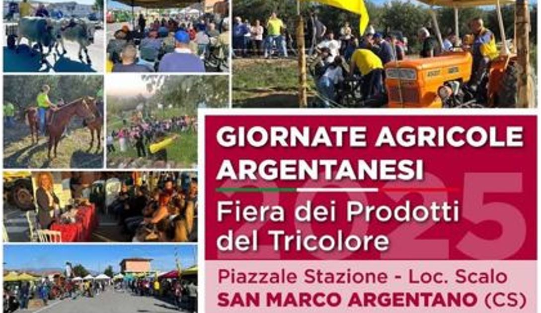 Sabato 20 e Domenica 21 Settembre il Comune di San Marco Argentano, con il patrocinio della Coldiretti e della Pro Loco presentano le Giornate Agricole Argentanesi, nella splendida Fiera dei Prodotti del Tricolore, Stand di Artigianato e di Enogastronomia, un evento imperdibile per tutta la famiglia