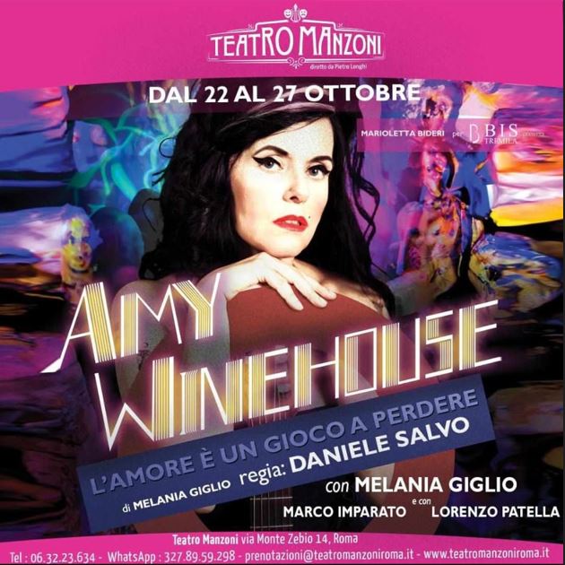 In questo nuovo lavoro si ripercorreranno gli ultimi giorni di vita della grande cantante scomparsa nel luglio del 2011 a soli 27 anni, probabilmente a causa di un’intossicazione da alcol. In scena i momenti umani e musicali più significativi di un’esistenza tormentata fatta di talento e dipendenze. A farla da padrone saranno le bellissime canzoni dell’indimenticabile interprete britannica, considerata una delle maggiori esponenti del soul bianco, travolta da un successo planetario ottenuto grazie alla pubblicazione, nel 2007, di Back to Black.
