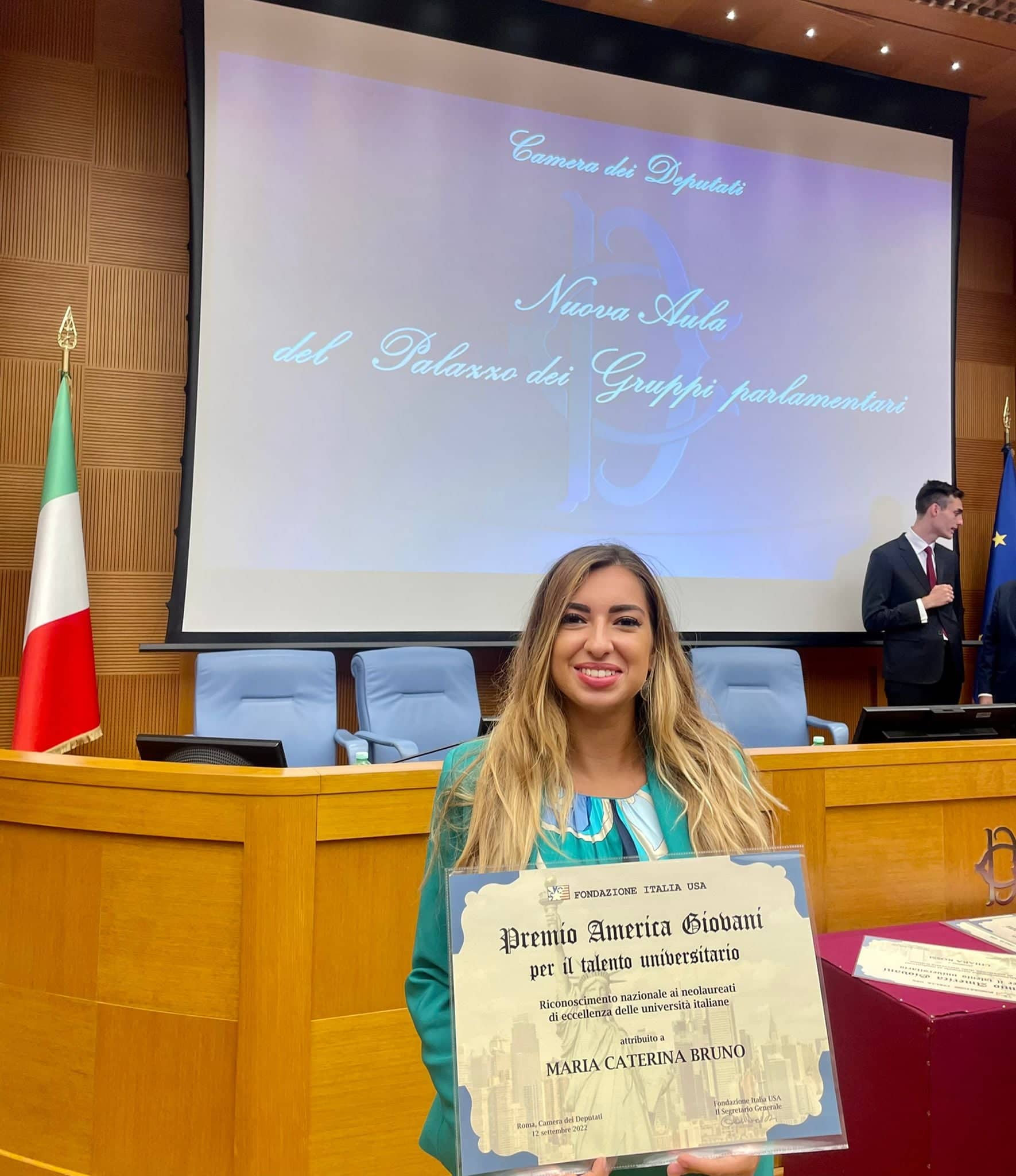 La politologa Caterina Bruno, giovane giornalista ventiquattrenne di Scalea, è stata insignita del prestigioso Premio America Giovani, della Fondazione Italia Usa destinato ai soli mille laureati d’eccellenza d’Italia.