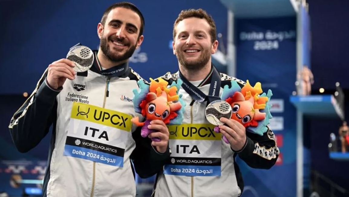 “Risultato da sogno per l’Italia ai Mondiali di Tuffi 2024, in corso di svolgimento a Doha (Qatar). Nella finale del trampolino sincro 3 metri, Lorenzo Marsaglia ed il cosentino Giovanni Tocci conquistano uno stupendo argento, che porta il Tricolore sul podio iridato per la 22ª volta nella storia. La prima però in questa specialità, dopo tante occasioni mancate da varie coppie italiane e a completare peraltro un podio completamente inedito.”