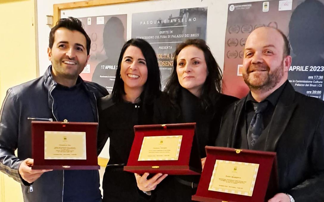 Momento di grande prestigio, la consegna dei vari riconoscimenti al regista Gianluca Sia, al produttore Santo Spadafora e all’attrice protagonista Stefania Mangia avvenuta nel pomeriggio presso la Commissione Cultura Palazzo dei Bruzi ad opera del Consigliere comunale Domenico Frammartino e alla presenza del Vicesindaco Maria Pia Funaro. Menzione di merito anche per Marisa Giglio, in qualità di presidente dell’associazione di volontariato “Senologia e Vita”, per il contributo elargito per la realizzazione e promozione del film.