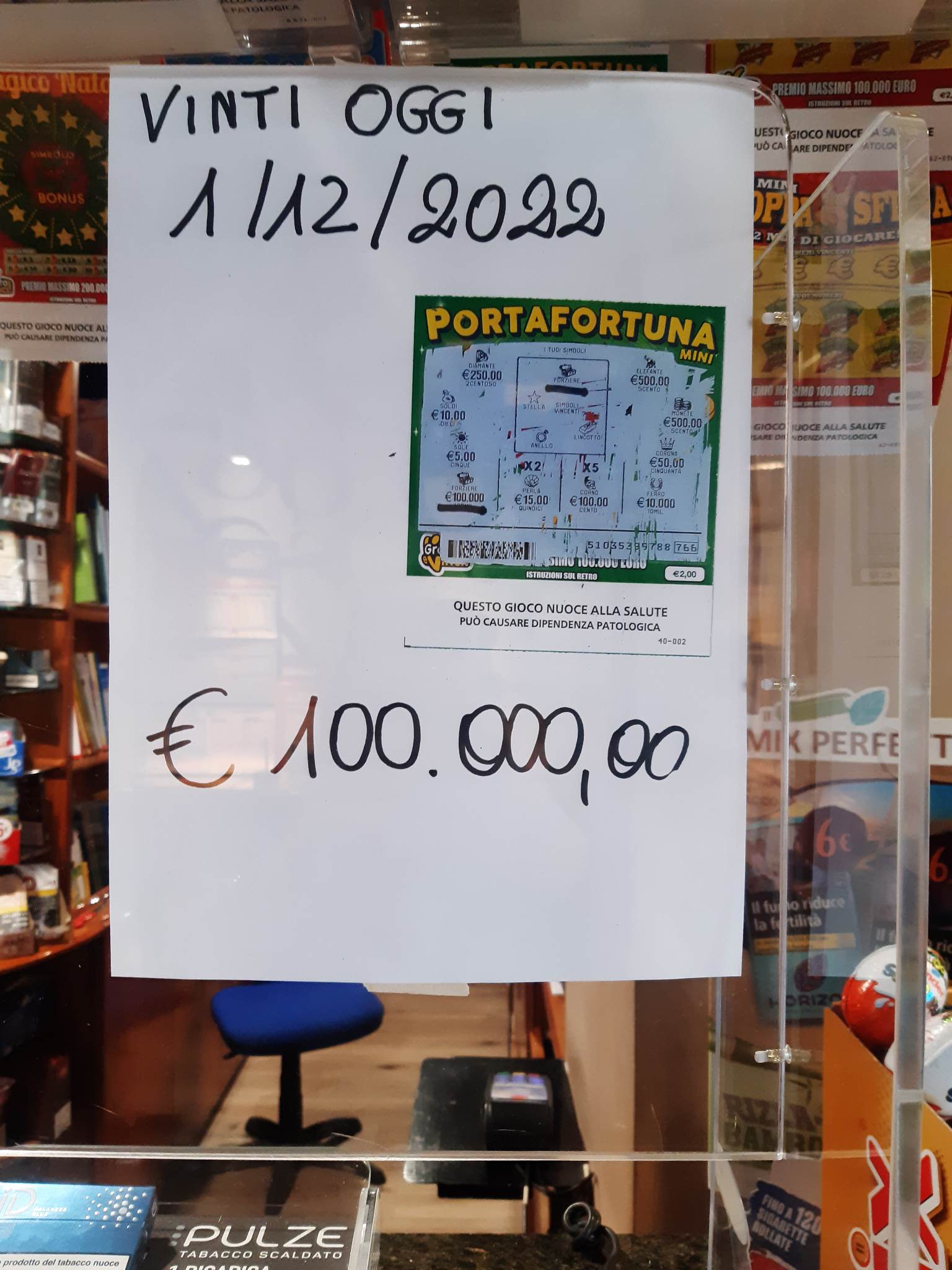 Il fortunato giocatore ha acquistato ieri il tagliando vincente del “Portafortuna Mini”, circuito Gratta e Vinci, del costo di 2 euro.