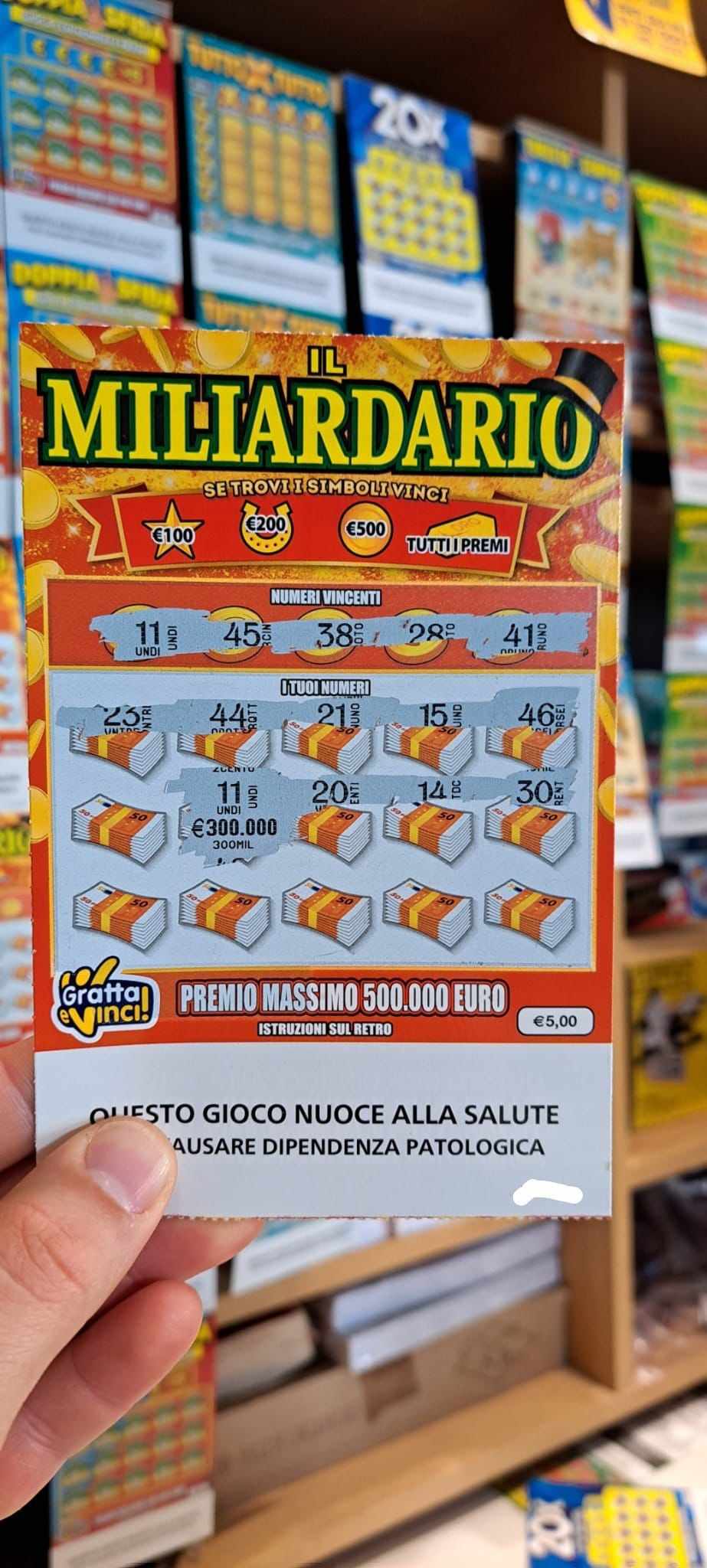 Il fortunato giocatore, questa mattina verso le ore 7:30, ha grattato un “Miliardario” da €5 della serie “Gratta e Vinci”, realizzando una vincita da 300mila Euro, abbinata al numero “11”.