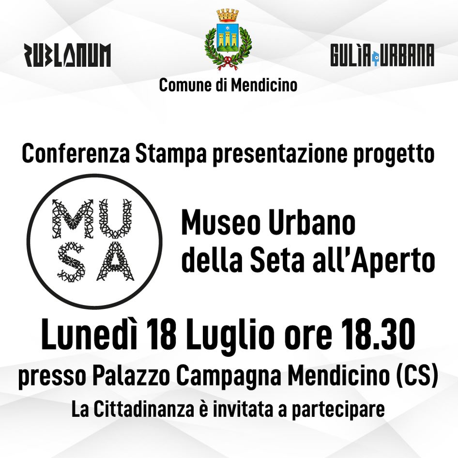 Approda a Mendicino Gulìa Urbana, il progetto itinerante di street art patrocinato dall’associazione Rublanum. Nei mesi scorsi, grazie alla collaborazione tra l’Amministrazione Comunale guidata dal Sindaco Antonio Palermo e il collettivo, è nata l’idea di rendere omaggio alle tradizioni e alla storia del borgo delle serre cosentine, attraverso un progetto speciale. Nascerà, infatti, dal 17 luglio, M.U.S.A. – Museo Urbano della Seta all’Aperto, progetto espositivo open-air che si integrerà al già esistente Museo della Seta. L’idea che ha guidato la creazione del museo è quella di ricordare una storia fatta di sapienza, manualità e amore verso un prodotto che è un vero e proprio simbolo del Comune di Mendicino.