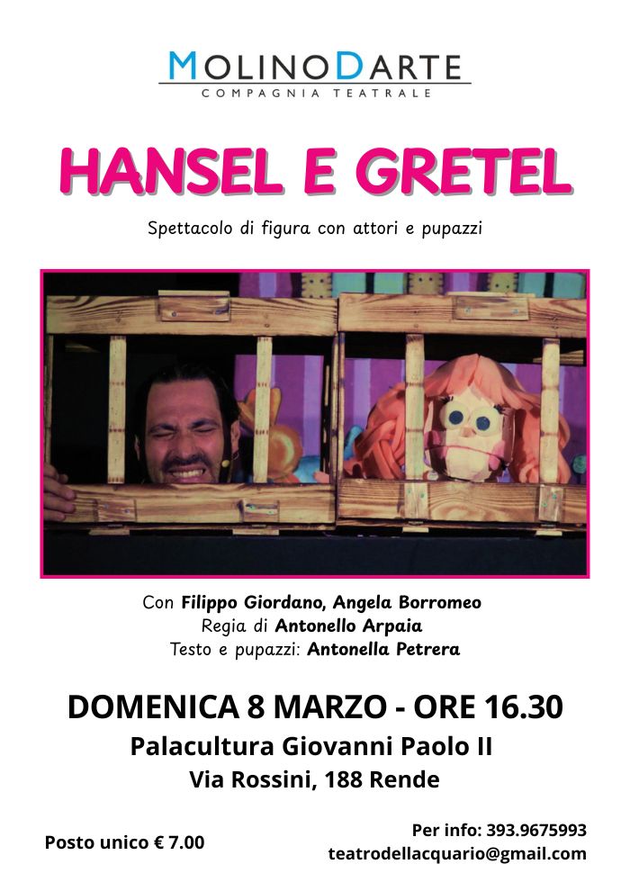 Domenica 8 marzo alle ore 16.30, il Palacultura di Rende ospiterà lo spettacolo “Hansel e Gretel”, appuntamento della rassegna Famiglie a Teatro, organizzata dal Centro RAT/Teatro dell’Acquario di Cosenza