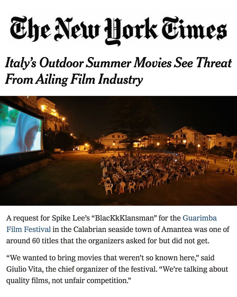 “KABLAM! The New York Times ha parlato di Amantea, della Calabria, de La Guarimba insieme a tante belle realtร che in Italia stanno lottando per riportare il cinema alla gente nonostante tutto.