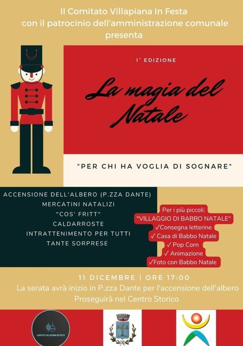 Il comitato Villapiana in Festa organizza, per giorno 11 dicembre 2022 dalle ore 17 a Villapiana Paese, “La magia del Natale” evento natalizio per famiglie e bambini