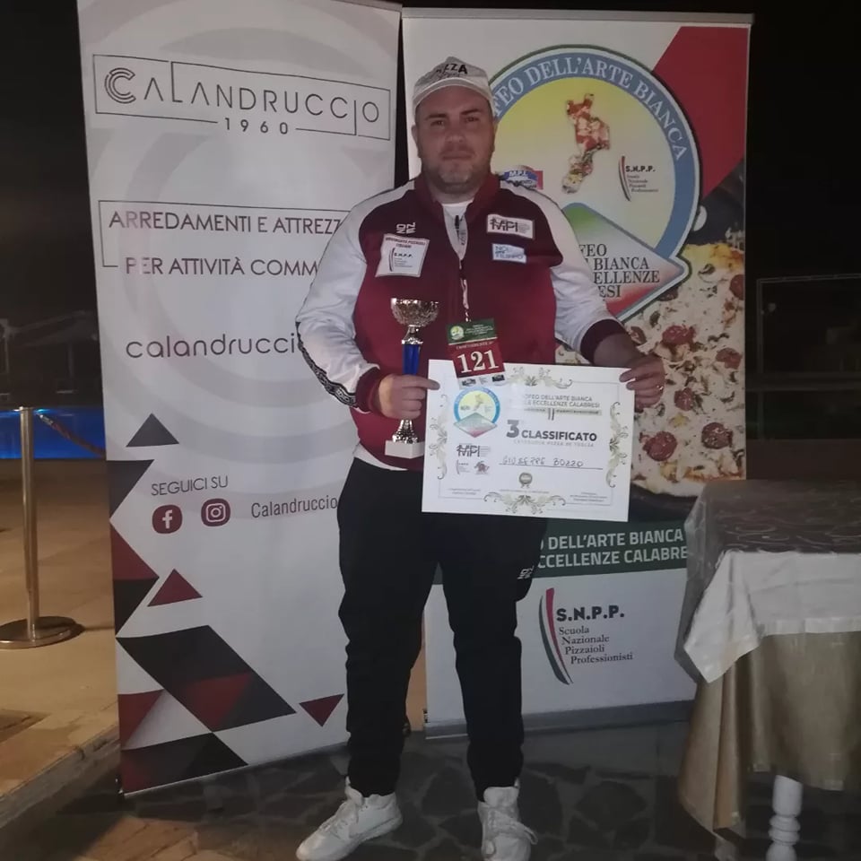 Al “Trofeo dell’arte bianca e delle eccellenze calabresi”, che si è svolto mercoledì a Roccella Jonica, il giovane pizzaiolo Giuseppe Bozzo, istruttore professionale MPI movimento pizzaioli italiani, si conferma sul podio, classificandosi al 3° posto nella categoria “Pizza in teglia” con la sua “Pizza Favolosa”.
