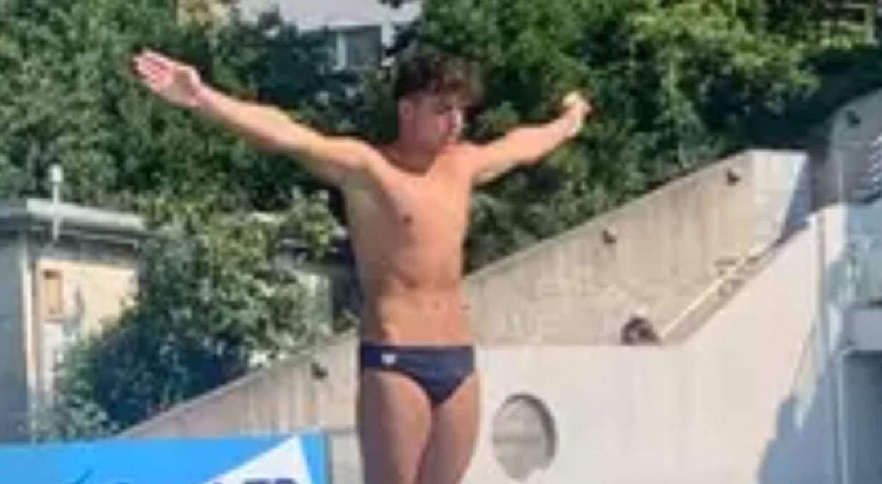 “Diciassette i partecipanti nella gara maschile da 1 metro. Per Ferraro nessun problema: ha passato l’eliminatoria con la terza posizione e 335.25 punti, inserendosi nel gruppo “virtuale” di atleti in lotta per il podio. Il 14enne cosentino sta ottenendo successi e grandi attenzioni sportive.”