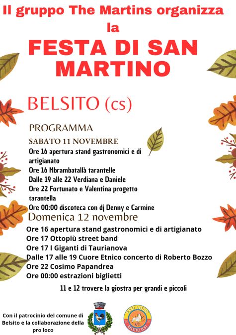 Appuntamento Belsito (Cs) l’11 e 12 novembre