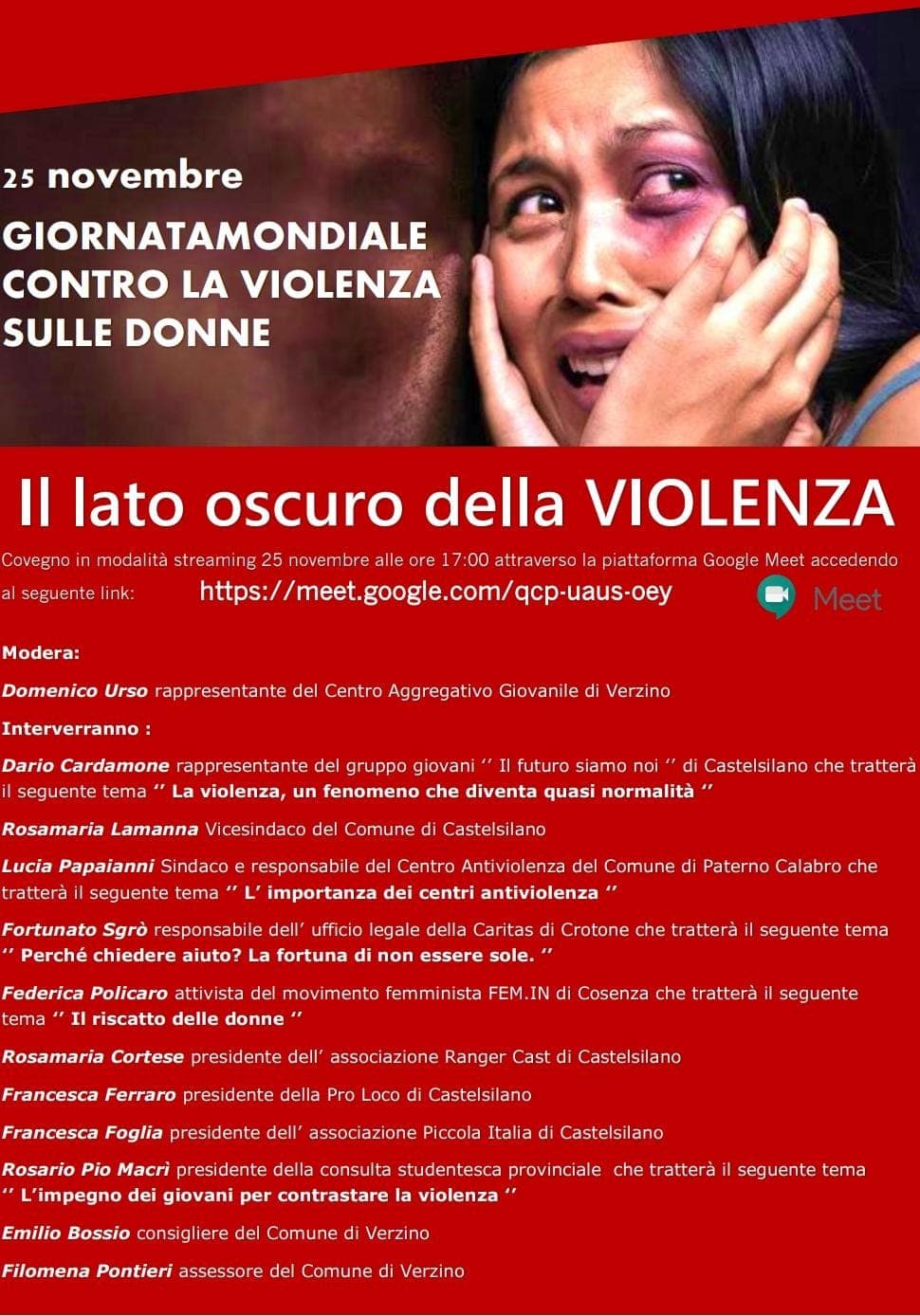 Il tutto si svolgerà online sulla piattaforma Google Meet, domani 25 novembre dalle ore 17:00