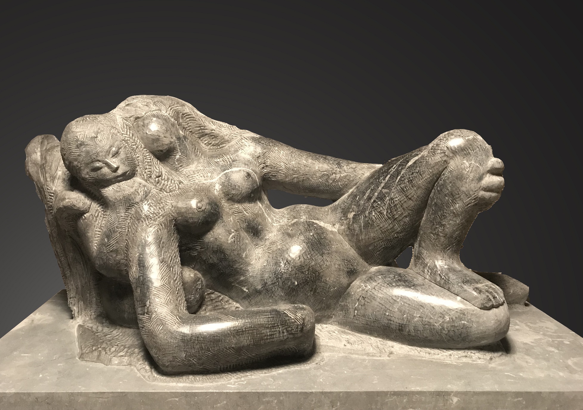 Delle nuove opere d’arte che arricchiranno il Museo all’aperto Bilotti, quattro appartengono all’artista Antonietta Raphael Mafai e sono: il “Toro Morente”, scultura in marmo nero marquinia delle dimensioni di cm. 110 x 60 x 85 ; “Le tre sorelle”, una scultura in marmo rosso vaticano delle dimensioni di cm 98 x 68 x 57; “Uomo in bagno”, scultura in marmo grigio botticino delle dimensioni di cm 138 x 48 x 61; “Missione segreta”, scultura in marmo nero marquinia. Tutte e 4 le sculture sono corredate di autentica della figlia dell’autrice, Giulia Mafai.