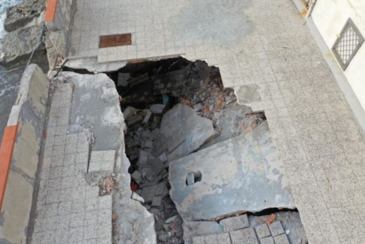 “Le fondamenta dell’immobile sono state compromesse da una violenta mareggiata. Una famiglia di cinque persone è stata evacuata e si trova attualmente in mezzo a una strada”
