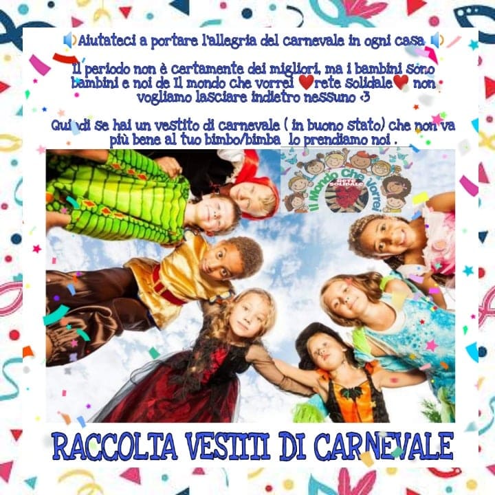 «Se hai un vestito di carnevale (in buono stato) che non va più al tuo bimbo/a lo prendiamo noi».
