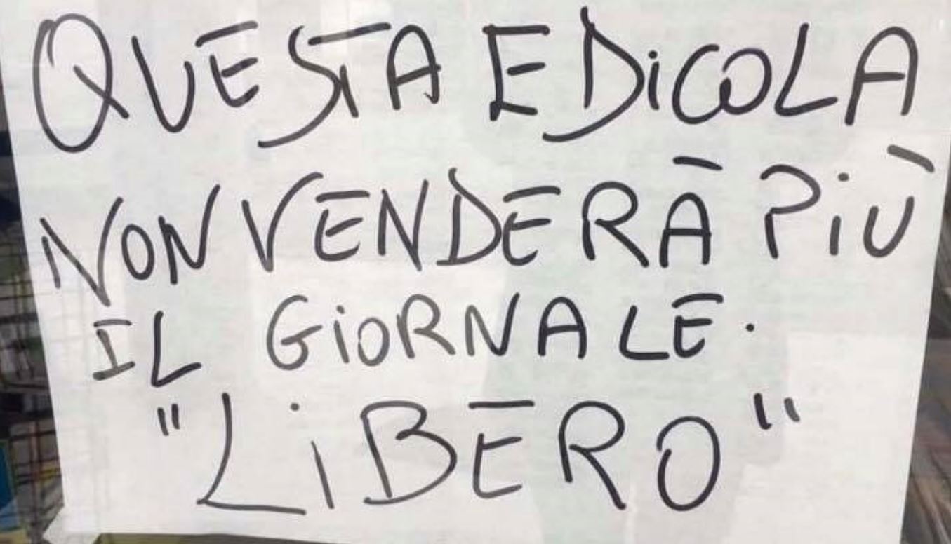 ESSENDO LA MIA LIBRERIA ANCHE EDICOLA, DA OGGI INFORMERO’ I MIEI CLIENTI, GENTE DEL SUD E NON SOLO, CHE IL GIORNALE ‘LIBERO’ NON VERRÀ PIÙ VENDUTO DA ME, PERCHÉ NON È GIUSTO ARRICCHIRE GENTE CHE NON CI PORTA RISPETTO.”