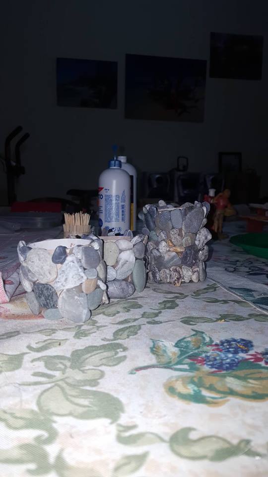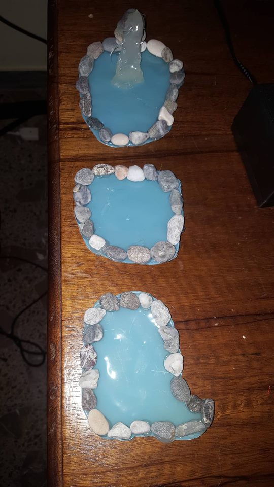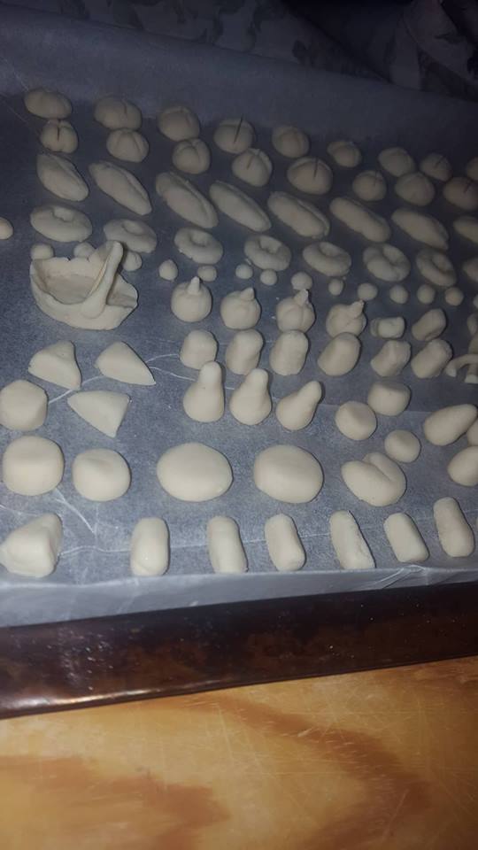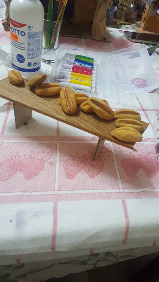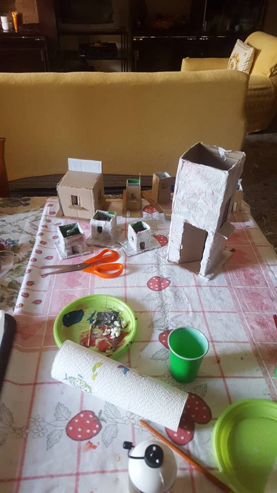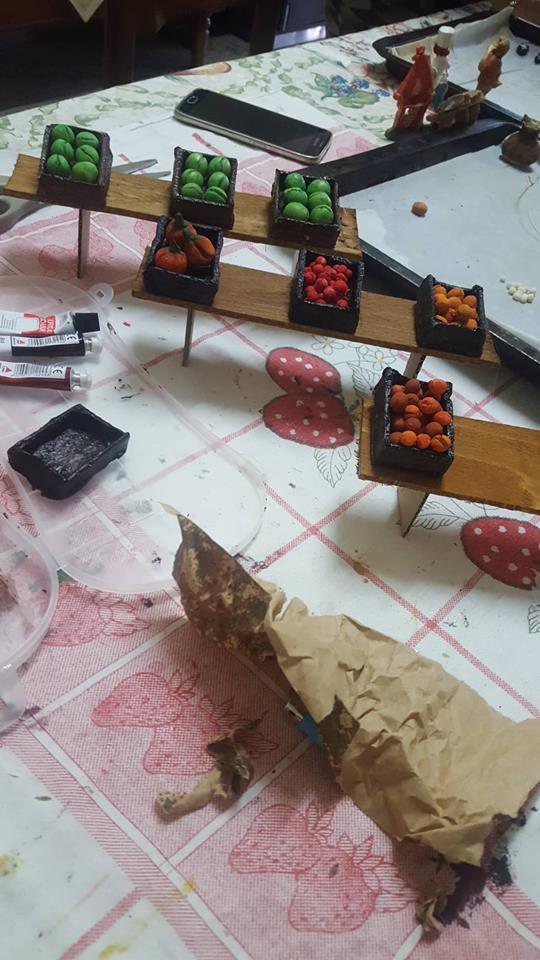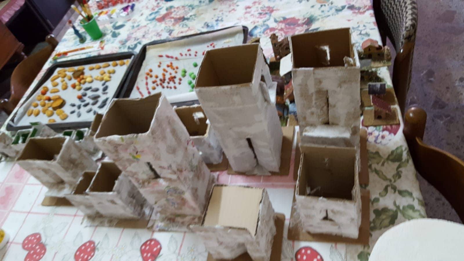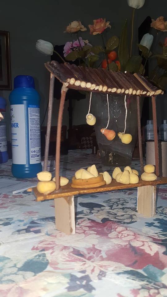 “Molte cose le ho realizzate a mano, tipo le case (inizialmente cartone incollato, poi ricoperto di carta pesta e successivamente pitturato e verniciato), i vari banchi degli artigiani, fatti di legno e allestiti con oggetti vari, sempre fatti a mano, con pasta di sale e poi ultimati con colore e vernice (ortaggi, pane, formaggi, salumi, pesci, pizza, attrezzi da lavoro), i pozzi, i laghetti, le scale, i recinti e tanto altro. Tutto ‘fai da me’.