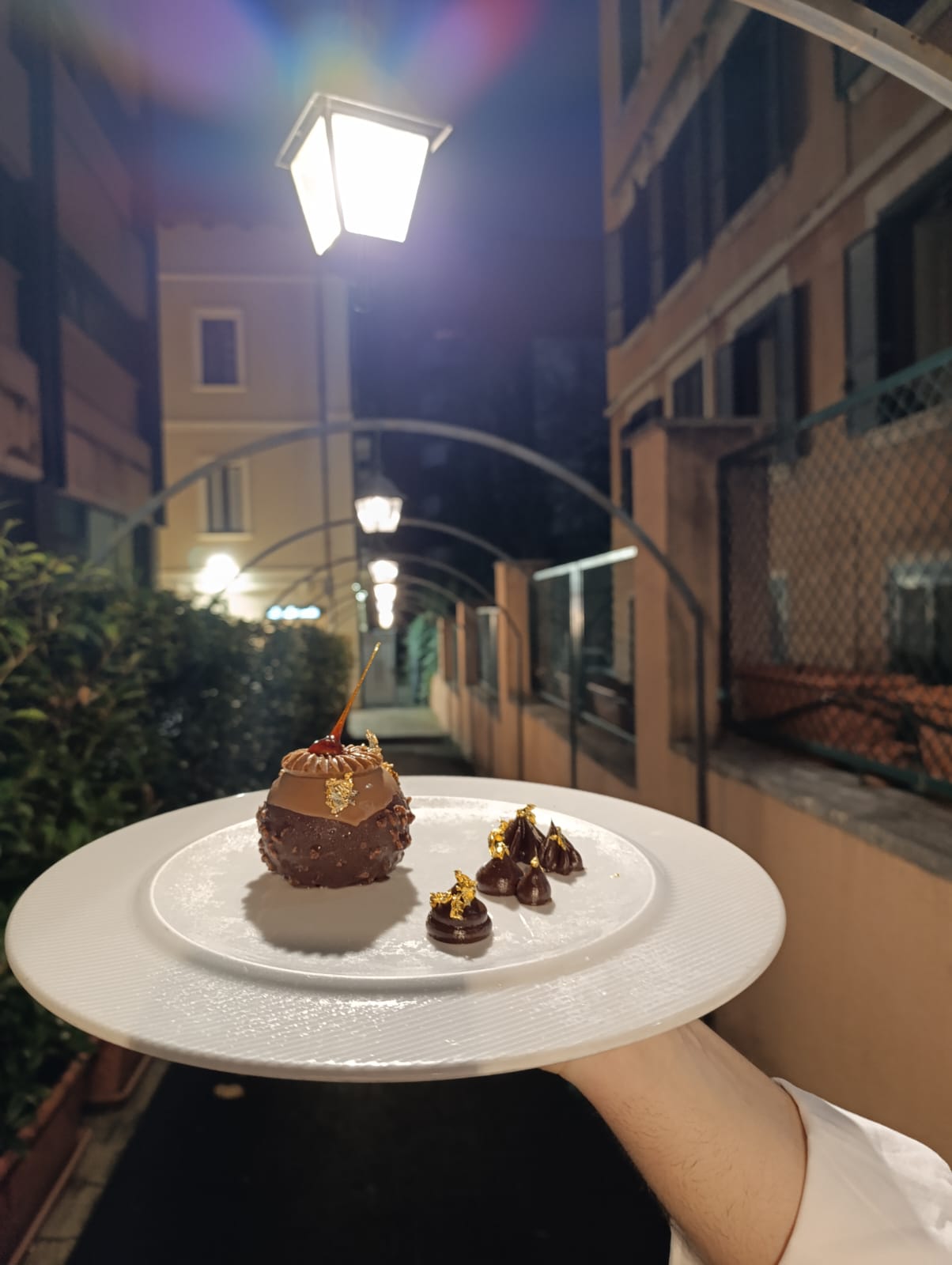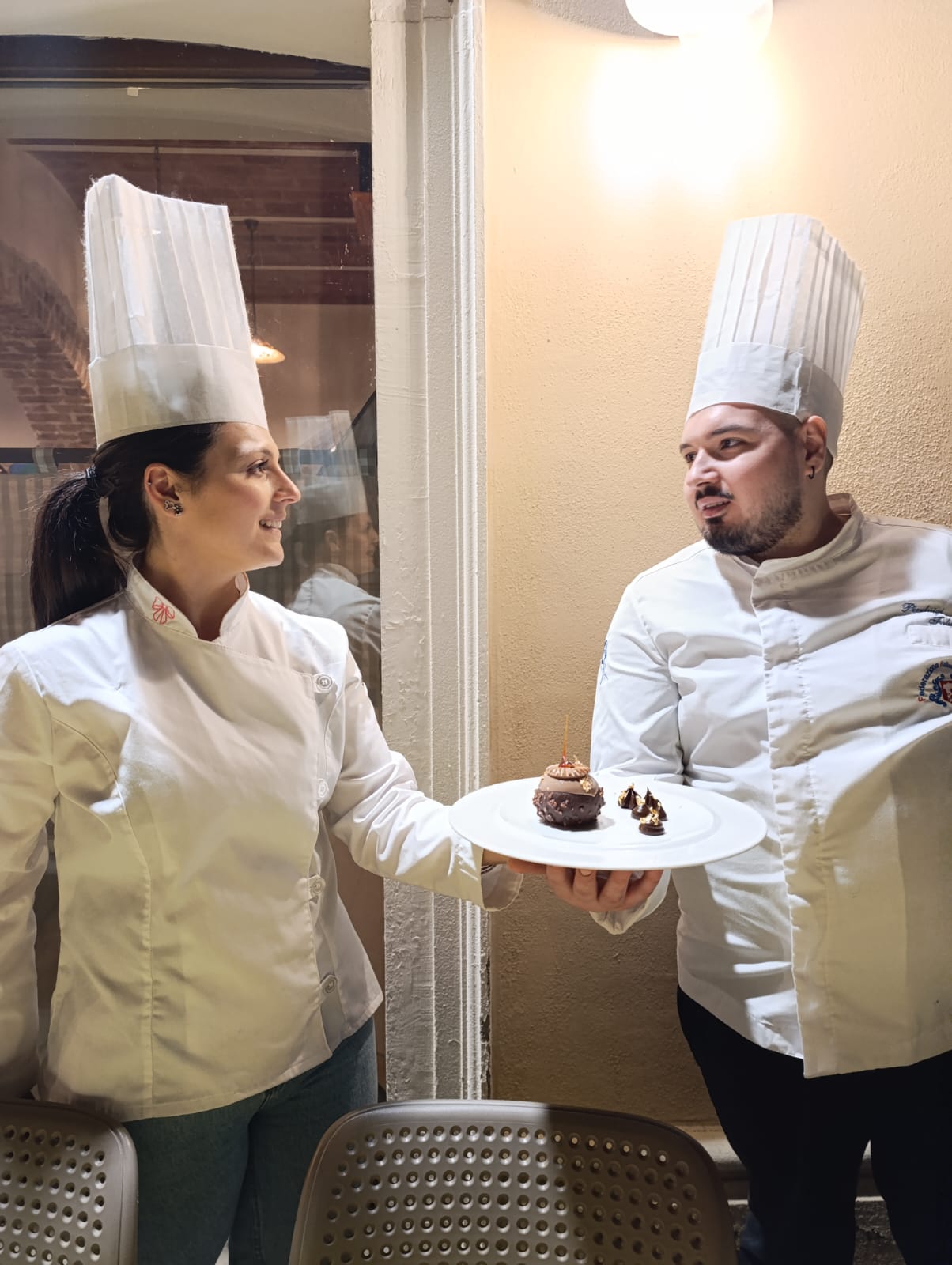 “Il dessert é un connubio tra il cioccolato e la nocciola che insieme celebrano l’amore e che rappresenta allo stesso tempo noi, l’amore tra un fratello ed una sorella.”
