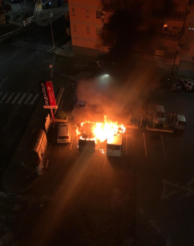 Coinvolta nel rogo anche un’altra vettura, una Fiat Panda parcheggiata vicino ai due mezzi dati alle fiamme