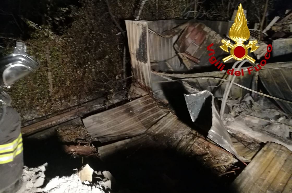 Il magazzino utilizzato per stoccaggio resine è andato distrutto.