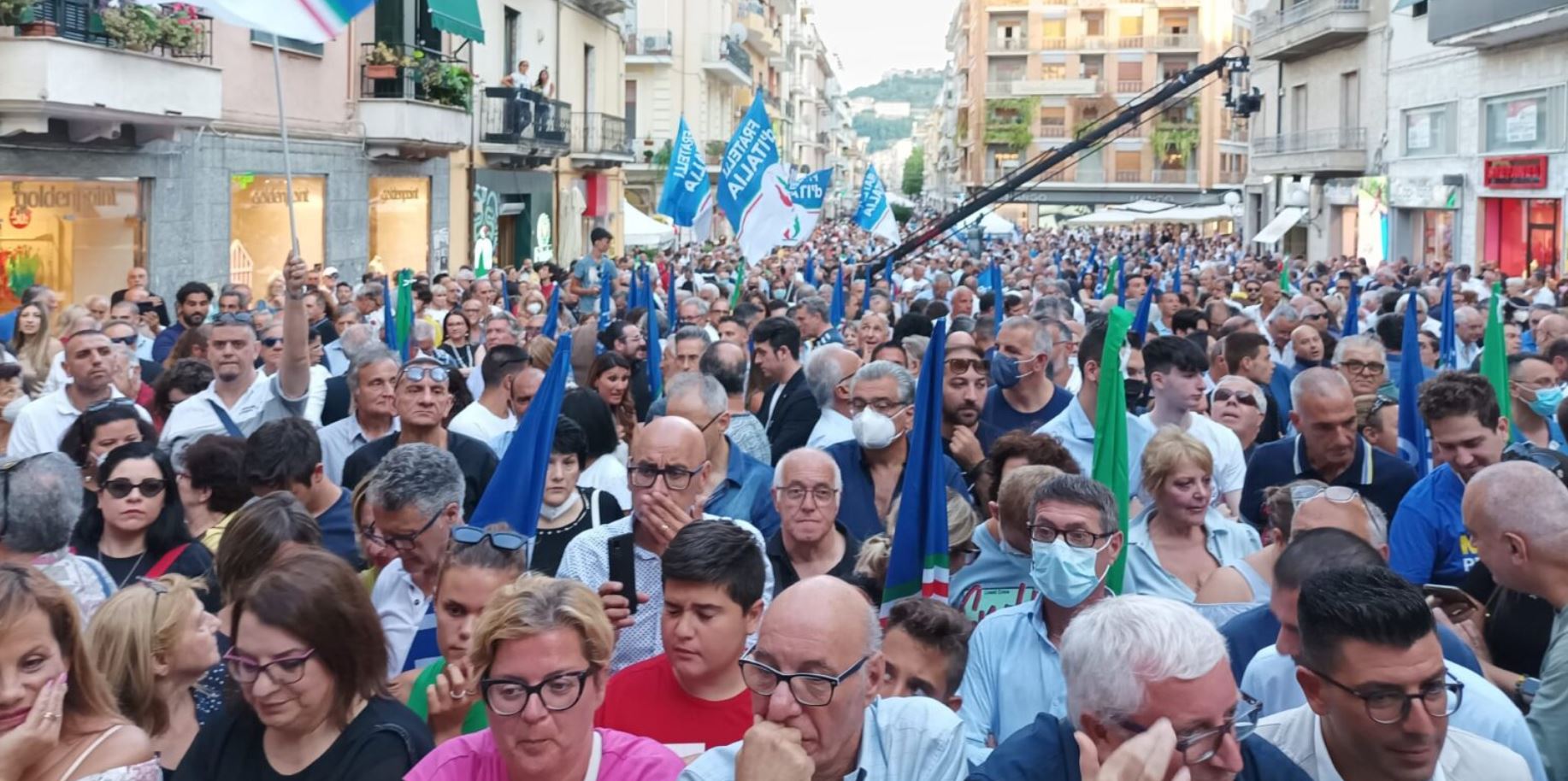 “Circa 4mila le persone che hanno accolto Meloni. «Il declino non è un destino ma una scelta. Noi amiamo le sfide difficili, ci dicevamo che eravamo spacciati, cancellati dai radar della politica. E invece – dice Giorgia Meloni – siamo vivi e vegeti ma siamo stimati come il primo partito alle prossime elezioni. In Calabria veniamo sempre con piacere».”