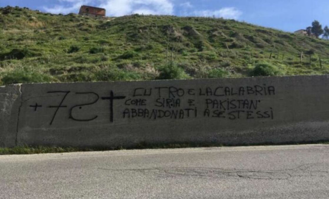 Alcuni messaggi si leggono su una parete lungo la strada che collega la statale 106 al centro in provincia di Crotone dove oggi pomeriggio è in programma la riunione del Consiglio dei ministri