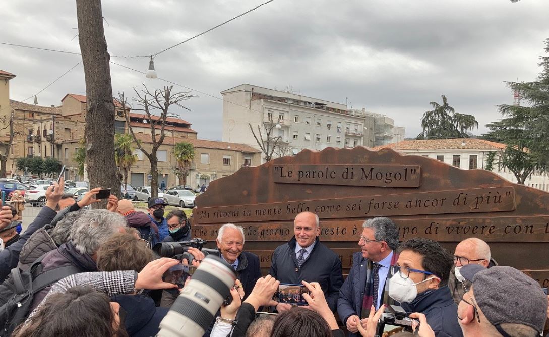 “Una scultura dedicata a Lucio Battisti ed inaugurata dal poeta delle canzoni del cantautore di Poggio Bustone, Giulio Rapetti Mogol, arrivato a Cosenza nel pomeriggio di oggi, su invito del Sindaco Franz Caruso e dell’Amministrazione comunale, per partecipare all’evento culturale organizzato per l’occasione e che segna una prima tappa importante in quel processo di riqualificazione di tutta l’area di Piazza Amendola, sempre più proiettata a diventare luogo della musica e ad affrancarsi dalla situazione di profondo degrado nella quale era precipitata per lungo tempo. Il rito della svelatura della scultura si è consumato nel pomeriggio, alla presenza di un folto pubblico. Il velo che copriva l’opera è stato tolto alla presenza del Sindaco Franz Caruso, di Mogol, dell’Assessore ai Lavori Pubblici Damiano Covelli che ha avuto un ruolo significativo nell’organizzazione dell’evento, e di tutta la Giunta municipale di Palazzo dei Bruzi.