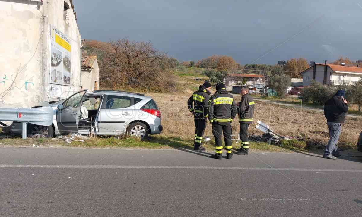 Incidente sulla 107, auto sbanda finendo contro un edificio