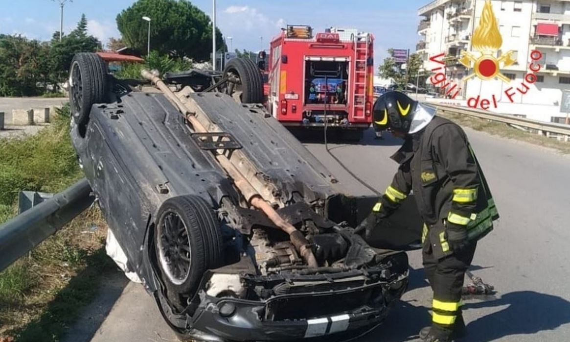 Una delle due auto è carambolata per circa 300 metri innescando un incendio alle sterpaglie situate a bordo strada