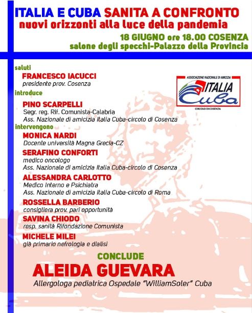 ore 18 dibattito pubblico al Salone degli specchi della Provincia su “Italia e Cuba, sanità a confronto: nuovi orizzonti alla luce della pandemia”