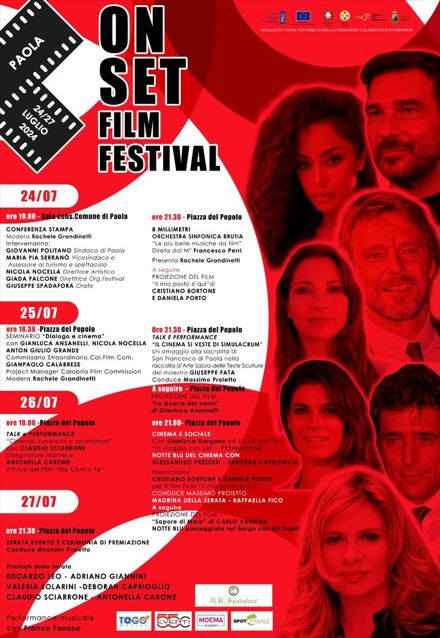 È tutto pronto per On Set Film Festival, la rassegna cinematografica che dal 24 al 27 luglio animerà la città di Paola (CS) con un programma ricco di eventi