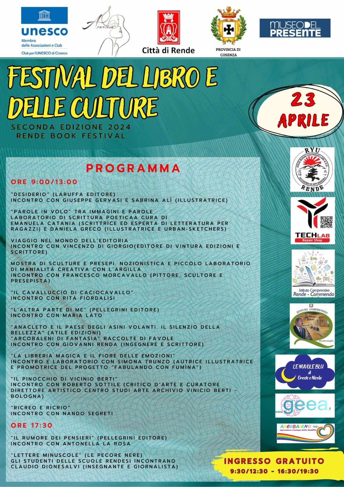 “L’evento promosso in occasione della giornata del libro 2024, una kermesse che vede giovani generazioni immersi in laboratori creativi di scrittura poetica, laboratori di argilla, mostre, illustratrice, incontri con gli autori… sarà di nuovo l’occasione di promuovere il libro e la cultura.