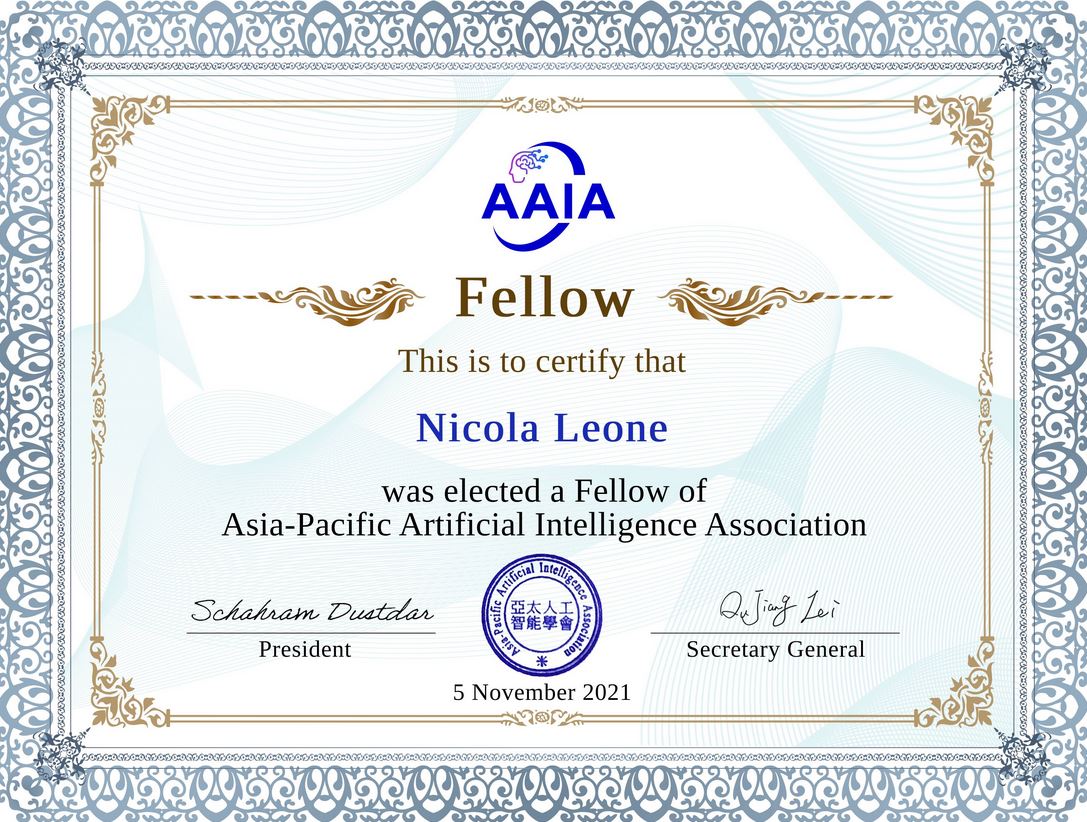 “L’Università della Calabria ottiene un nuovo riconoscimento scientifico che ne rafforza la leadership nel campo dell’Intelligenza Artificiale, confermata a livello internazionale oltre che nazionale. L’Asia-Pacific Artificial Intelligence Association (AAIA) ha conferito la fellowship al professor Nicola Leone, ordinario di Informatica, rettore dell’Unical e ricercatore apprezzato a livello internazionale per i suoi studi nell’ambito dell’Intelligenza Artificiale “deduttiva”, sulla logica per la rappresentazione della conoscenza e i sistemi di ragionamento automatico.