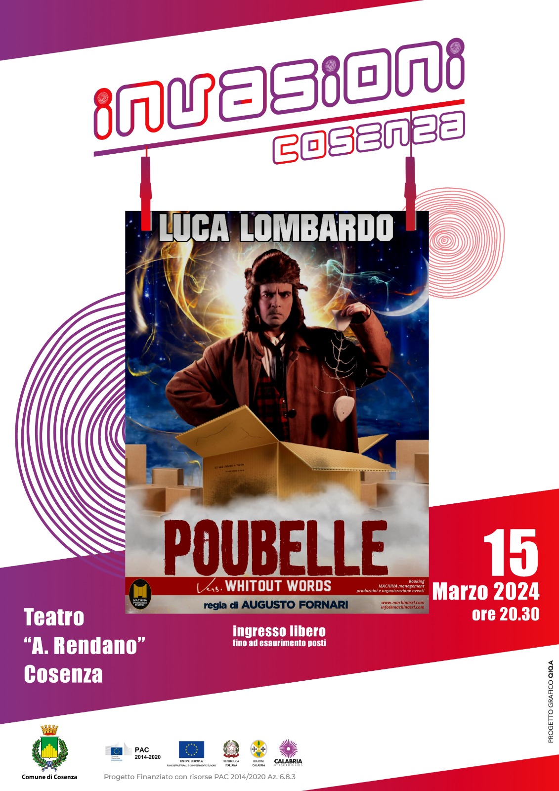 Portare lo spettatore in un mondo fantastico, fatto di invenzioni, peripezie, prodigiosi cambi di costume e tanti personaggi, 40 per l’esattezza. Ecco cosa farà questa sera, 15 marzo, alle ore 20:30 presso il Teatro Rendano di Cosenza, il mago, prestidigitatore, attore, clown e trasformista Luca Lombardo, con lo spettacolo “Poubelle”.