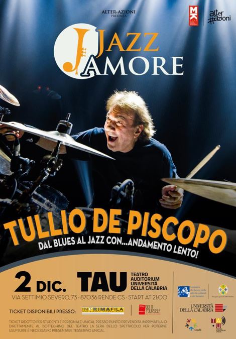 JazzAmore ritorna al Teatro Auditorium Unical: domani sera va in scena Tullio De Piscopo, leggenda partenopea che con le sue bacchette ha incantato musicisti del calibro di Chet Baker e Astor Piazzolla