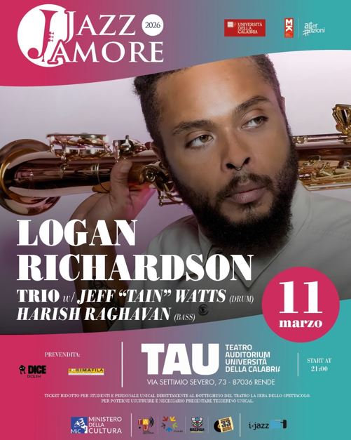 JazzAmore compie cinque primavere e regala al suo pubblico una nuova edizione con nomi altisonantiSi parte mercoledì 11 marzo alle h 21,00 al Teatro Auditorium dell’Università della Calabria con l’esibizione di Logan Richardson accompagnato dalle leggendarie bacchette di Jeff “Tain” Watts