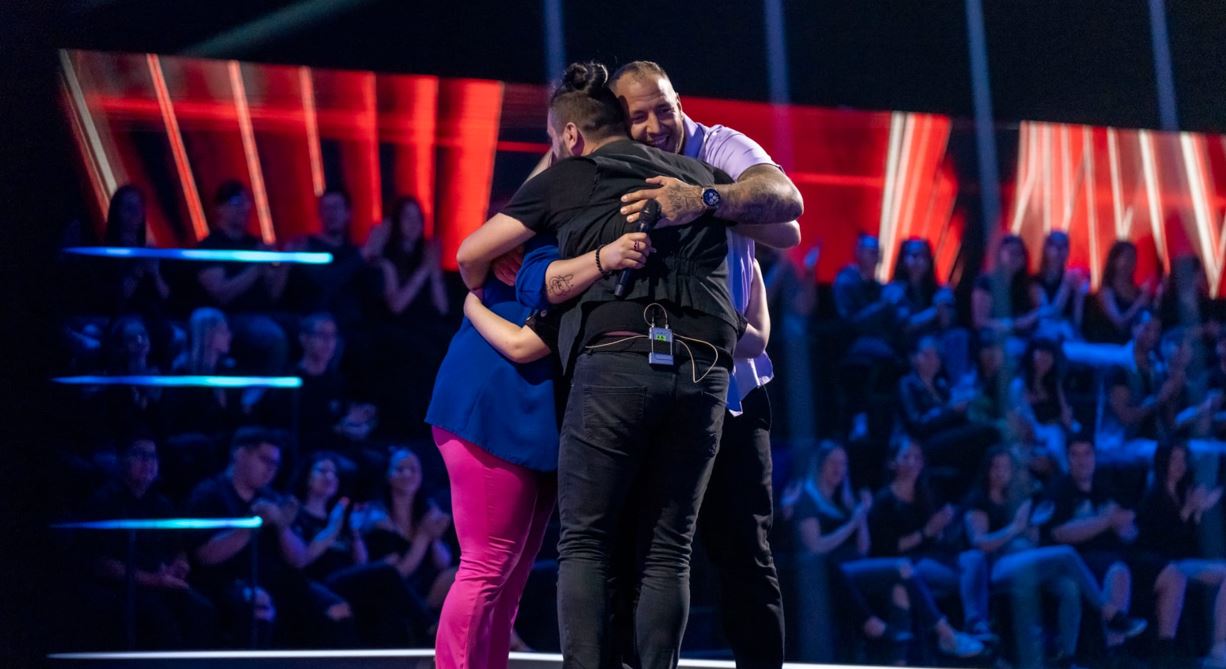 Lo studio si ferma, il pubblico ascolta in silenzio, l’emozione è forte e dopo pochi secondi il Coach “Nori” spinge con convinzione sul pulsante rosso, la sedia si gira e per Cinzia è un segnale di approvazione.
