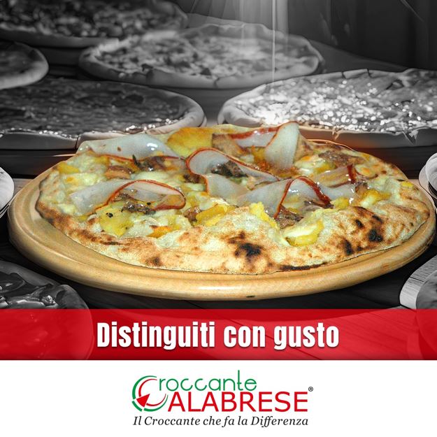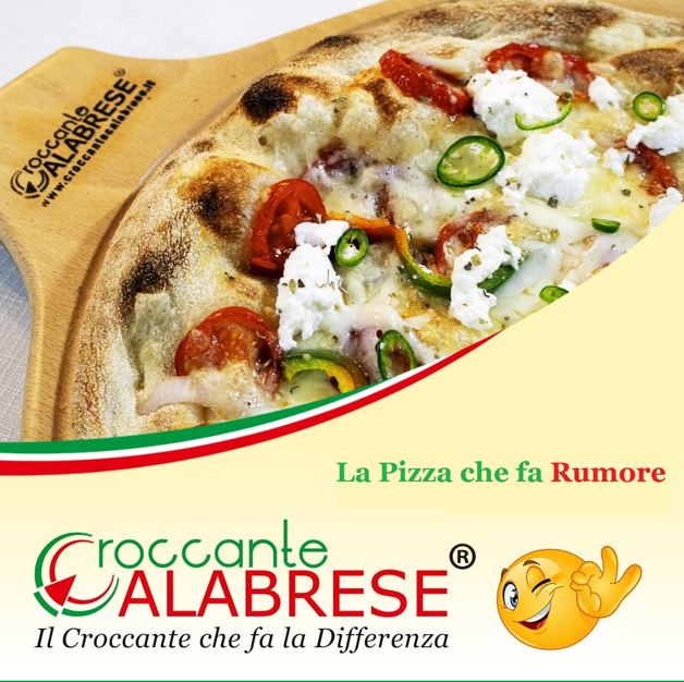 Sintetizzato nello slogan “La pizza che fa rumore”, il marchio registrato punta su un prodotto altamente riconoscibile: una pizza dalla struttura alveolata, leggera, estremamente digeribile e caratterizzata da una croccantezza marcata. Anche il logo racconta questa identità: il rosso richiama il carattere fiero e passionale del popolo calabrese, mentre il verde rappresenta perseveranza ed equilibrio; il termine “croccante”, oltre a descrivere la consistenza, diventa metafora di un legame profondo con la propria terra, una Calabria “croccante dentro”.