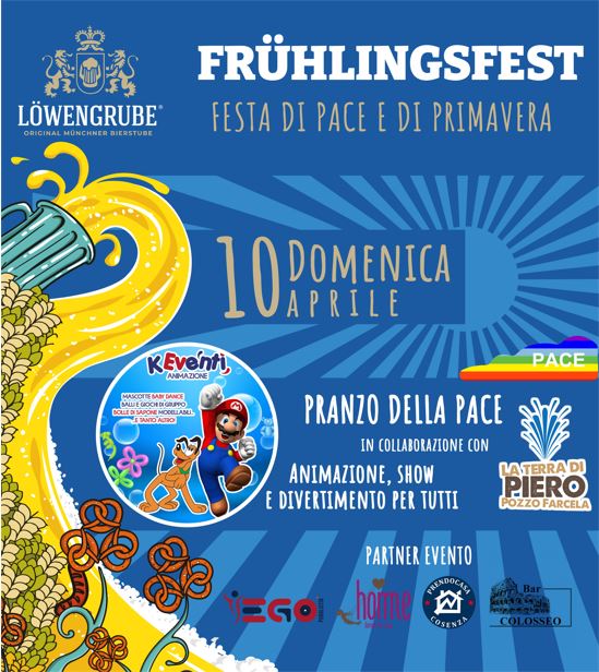 Sì terrà domenica 10 aprile, in collaborazione con “La Terra di Piero” e altre associazioni attive sul territorio come “Home” e “Prendo Casa”, la Festa di Pace e di Primavera da Löwengrube, a Quattromiglia di Rende in Piazza Santo Sergio (vicino alla biblioteca civica)