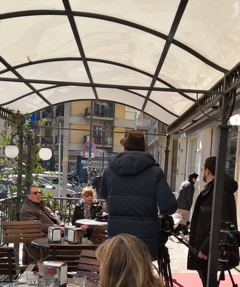 Qui in alto una foto mentre realizzavano il servizio a Cosenza al Bar San Francesco di Piazza Europa.