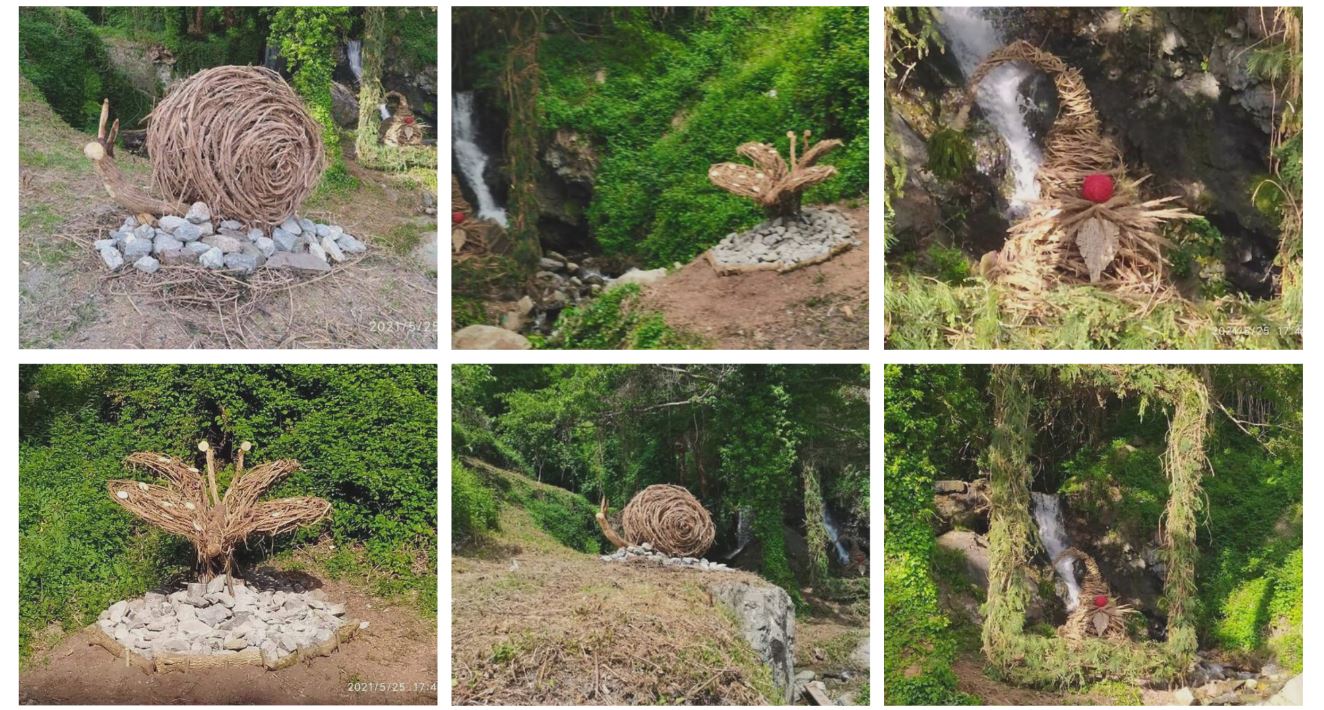 In poco tempo hanno creato alcune opere artistiche utilizzando unicamente materiali provenienti dalla natura e sono riusciti a mettere a contatto due mondi apparentemente molto lontani.