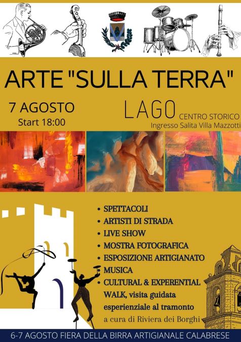 Oltre 40 artisti, domenica 7 agosto, esporranno le loro opere nei vicoli del centro storico soprano (una zona identificata a Lago come “supra a terra”— da qui il nome “arte sulla terra”).